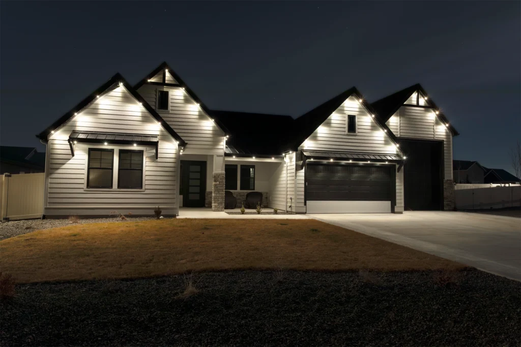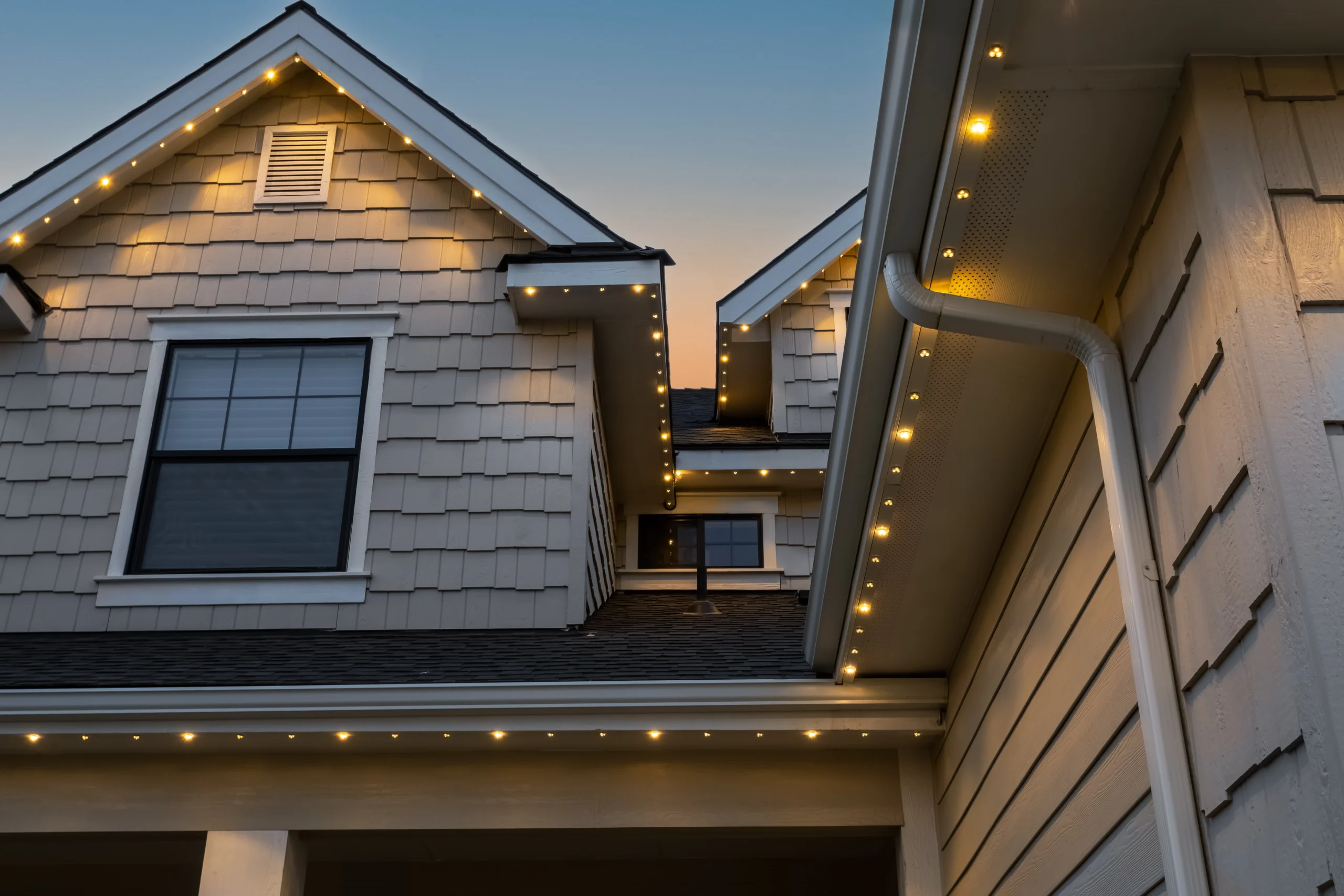 Permanent lighting is a professionally installed exterior lighting system that stays on your home year-round. It is designed to blend into the architecture during the day and deliver beautiful, customizable lighting at night without the need for seasonal setup or removal.